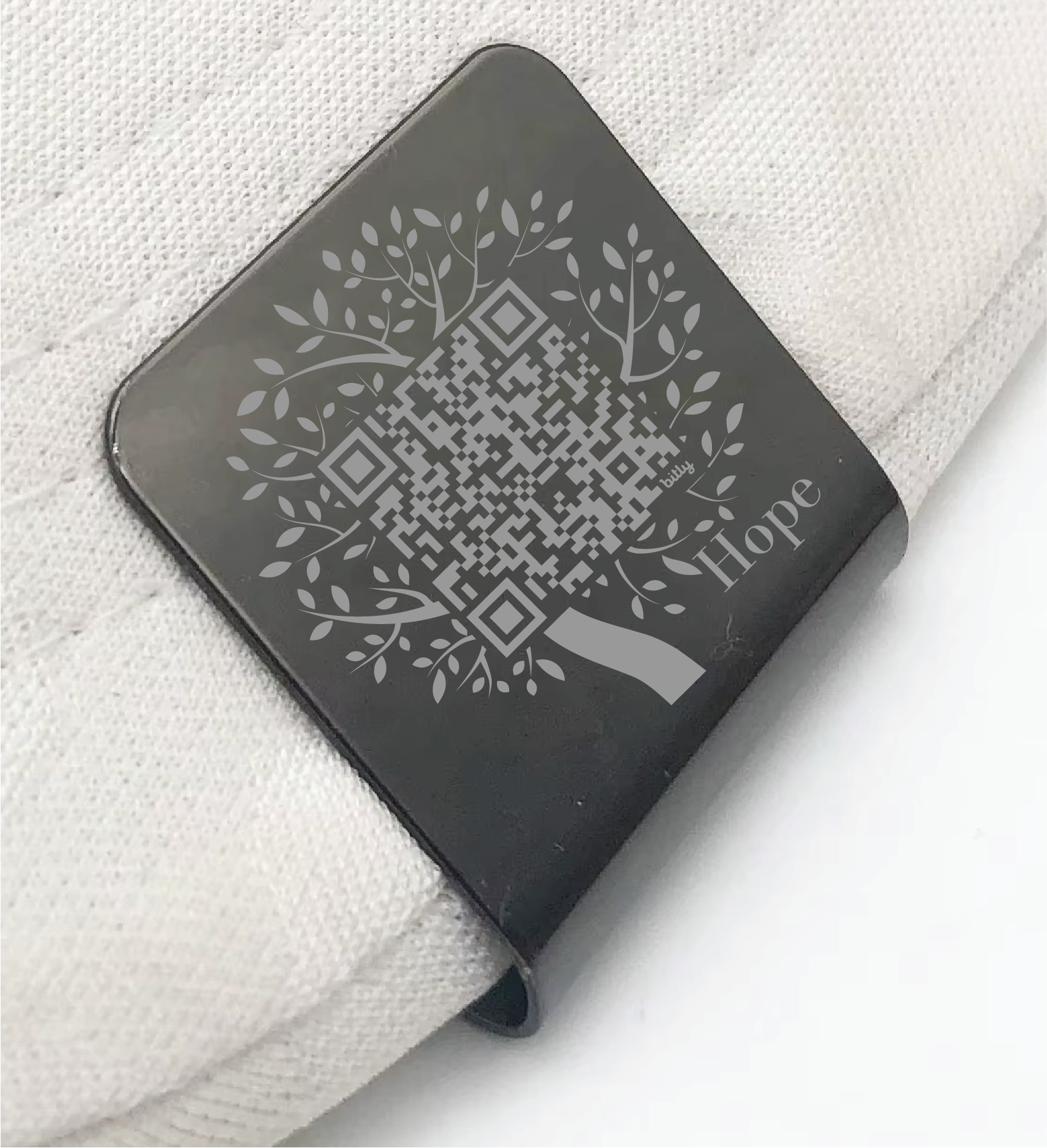 Add a touch of meaningful style and modern functionality to your headwear with our Hope Tree QR Code Engraved Metal Hat Clip. This sleek, square metal clip features a beautifully intricate tree silhouette, symbolizing growth and hope, with a cleverly integrated QR code at its core.