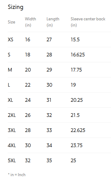 Sizes: Adult Small, Medium, Large, XL, 2XL, 3XL